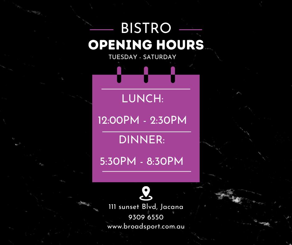 About USBroadmeadows Sporting ClubSitting at the bottom of the valley along the Jacana Valley Parklands, Broadmeadows Sporting Club is a local institution with a deep connection to the surrounding communities. As you turn off Pascoe Vale Road and make your way down to the Club, you immediately escape the hustle and bustle and can enjoy the stunning surrounds. The Club is the perfect spot to gather with your family, relax after a long week, catch up with friends or get together for a celebration. People keep on coming back for our great food too! Our bistro is open 5 days a week, offering a delicious menu that changes seasonally, with great pub favourites including burgers, steak and parma and specials every night of the week. We cater for the whole family including a kids and seniors menu. We have regular drink specials throughout the Club, including happy hour on Thursday and Friday too. Visit our bar, and you’ll find a wide variety of wines to choose from, and an extensive selection of beers on tap. When it comes to live sport, you can’t go past our Sports Bar. With screens everywhere you look, you won’t miss any of the action. If you're after a more relaxed atmosphere, take in the endless views from our beer garden. Become a Member |