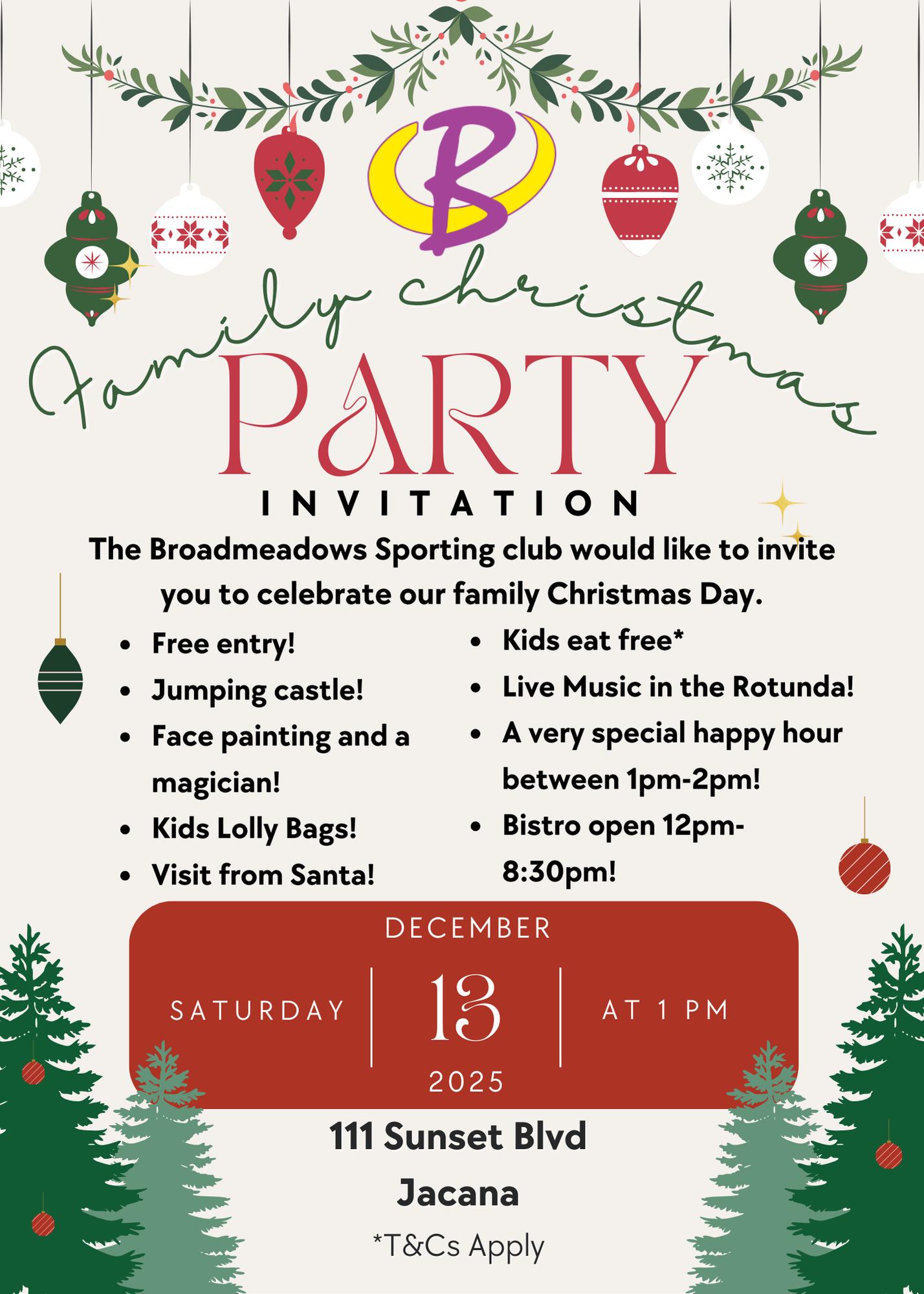 50th AnniversaryThe Broadmeadows Sporting Club our proud to announce it is our 50th anniversary! Every one is invited!