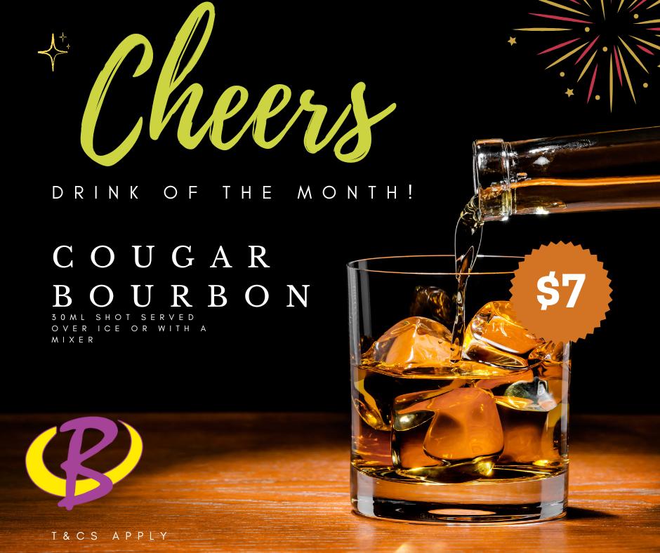 January Drink Special!For the month of January enjoy a glass of Cougar Bourbon for only $7! Limited stock! T&Cs Apply. |